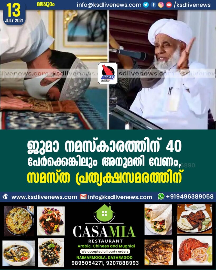ജുമാ നമസ്കാരത്തിന് 40 പേർക്കെങ്കിലും അനുമതി വേണം’, സമസ്ത പ്രത്യക്ഷസമരത്തിന്