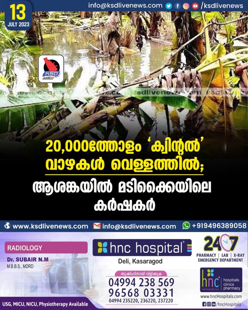 20,000ത്തോളം ‘ക്വിന്റൽ’ വാഴകള് വെള്ളത്തില്; ആശങ്കയിൽ മടിക്കൈയിലെ കർഷകർ