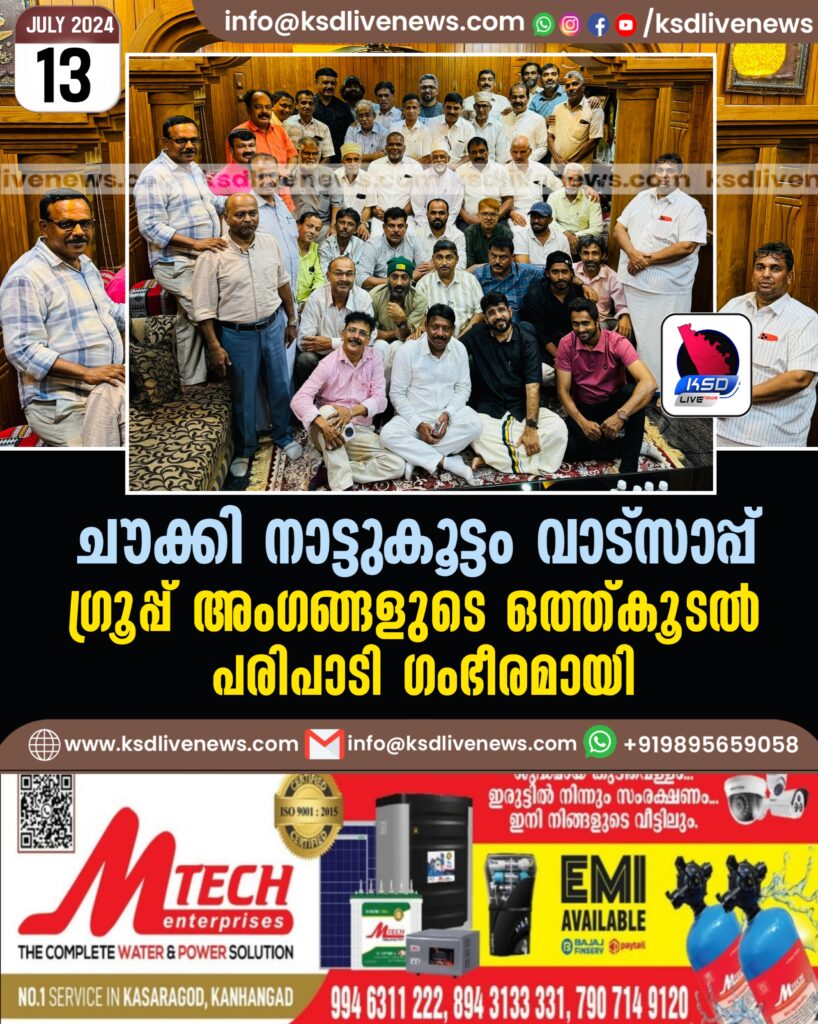 ചൗക്കി: ചൗക്കി നാട്ടു കൂട്ടം വാട്സാപ്പ് ഗ്രൂ,പ്പ് അംഗങ്ങളുടെ ഒത്തു ചേരൽ ഗ്രൂപ്പ് അംഗം ഹനീഫ് ബദ്രിയ ചൗക്കി യുടെ വീട്ടിൽ സംഘടിപ്പിച്ചു