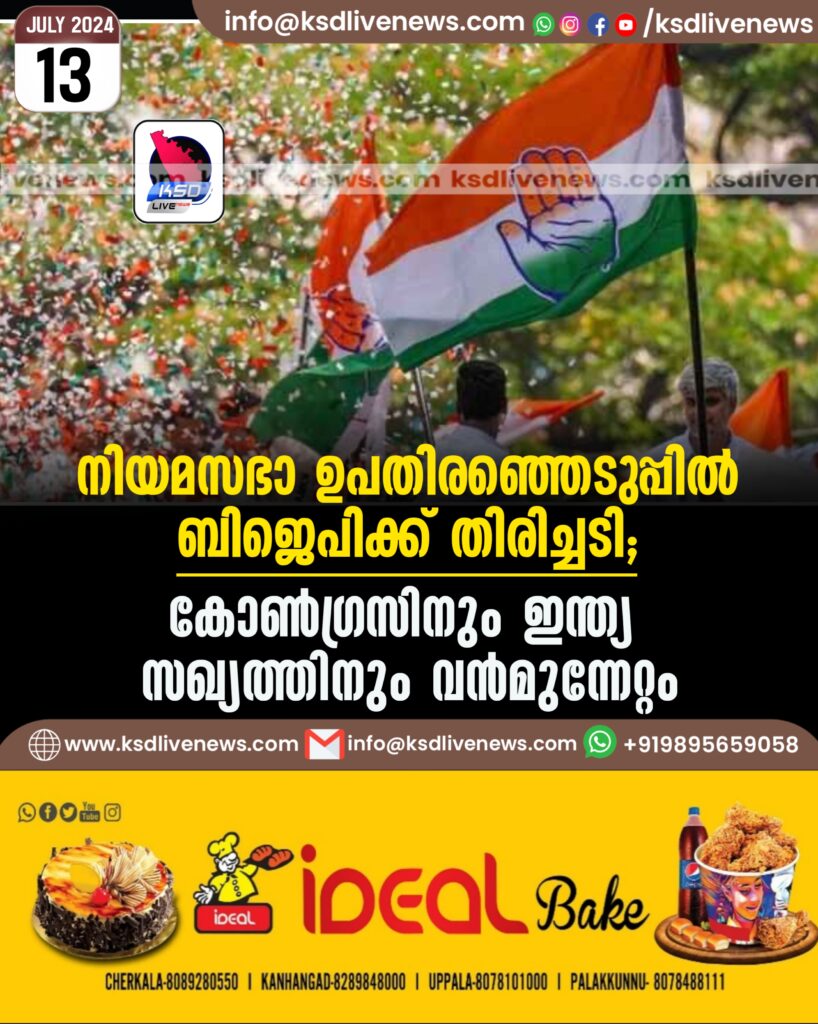 നിയമസഭാ ഉപതിരഞ്ഞെടുപ്പില് ബിജെപിക്ക് തിരിച്ചടി; കോണ്ഗ്രസിനും ഇന്ത്യ സഖ്യത്തിനും വന്മുന്നേറ്റം