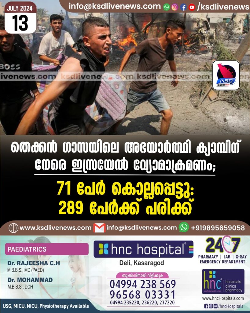 തെക്കൻ ഗാസയിലെ അഭയാർത്ഥി ക്യാമ്പിന് നേരെ ഇസ്രയേൽ വ്യോമാക്രമണം; 71 പേർ കൊല്ലപ്പെട്ടു, 289 പേർക്ക് പരിക്ക്