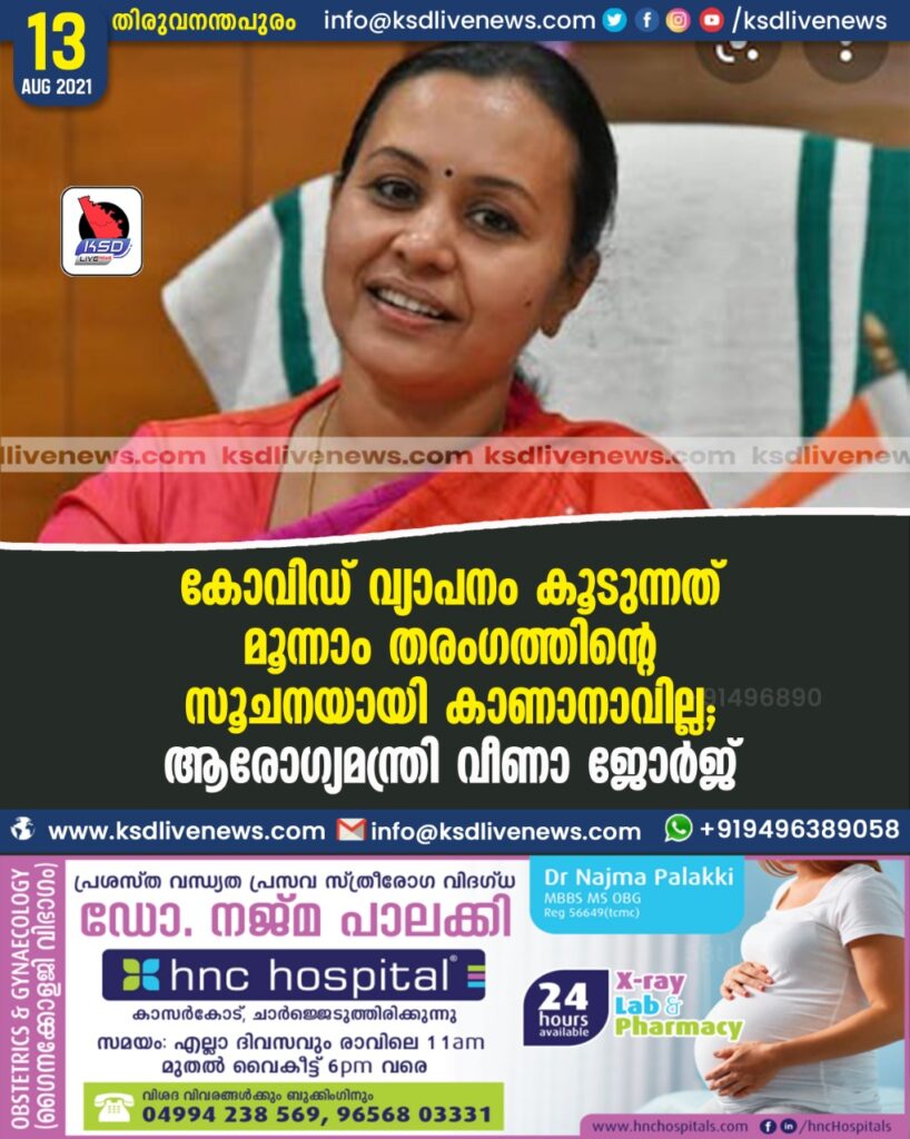 ‘കോവിഡ് വ്യാപനം കൂടുന്നത് മൂന്നാം തരംഗത്തിന്റെ സൂചനയായി കാണാനാവില്ല’; ആരോഗ്യമന്ത്രി വീണാ ജോര്ജ്
