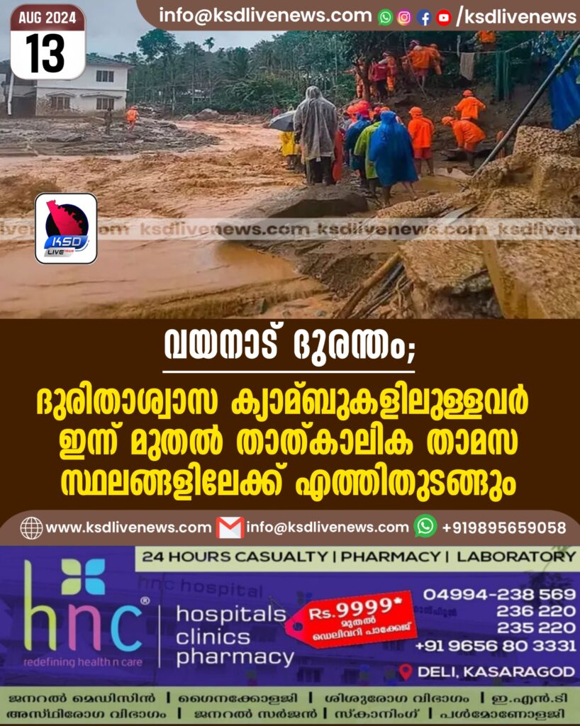 വയനാട് ദുരന്തം; ദുരിതാശ്വാസ ക്യാമ്ബുകളിലുള്ളവര്‍ ഇന്ന് മുതല്‍ താത്കാലിക താമസ സ്ഥലങ്ങളിലേക്ക് എത്തിതുടങ്ങും