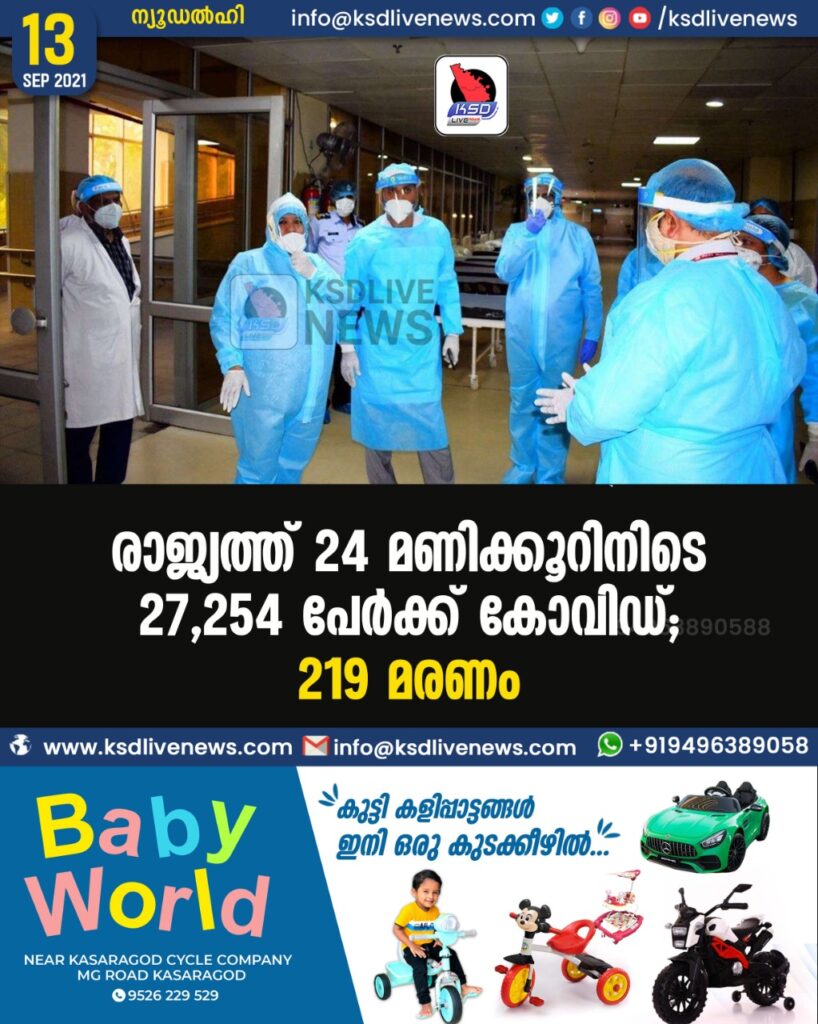 രാജ്യത്ത് 24 മണിക്കൂറിനിടെ 27,254 പേർക്ക് കോവിഡ് ; 219 മരണം