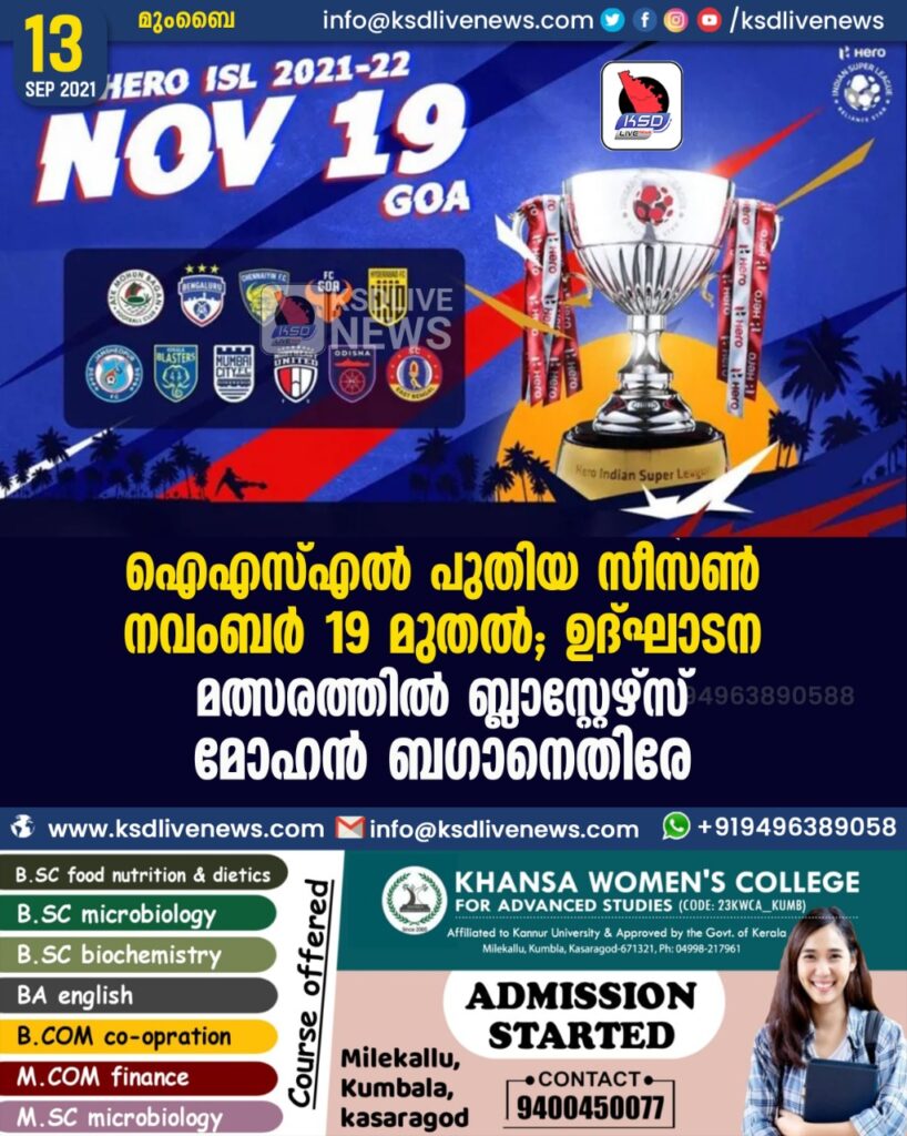 ഐഎസ്എല് പുതിയ സീസണ് നവംബര് 19 മുതല്; ഉദ്ഘാടന മത്സരത്തില് ബ്ലാസ്റ്റേഴ്സ് മോഹന് ബഗാനെതിരേ