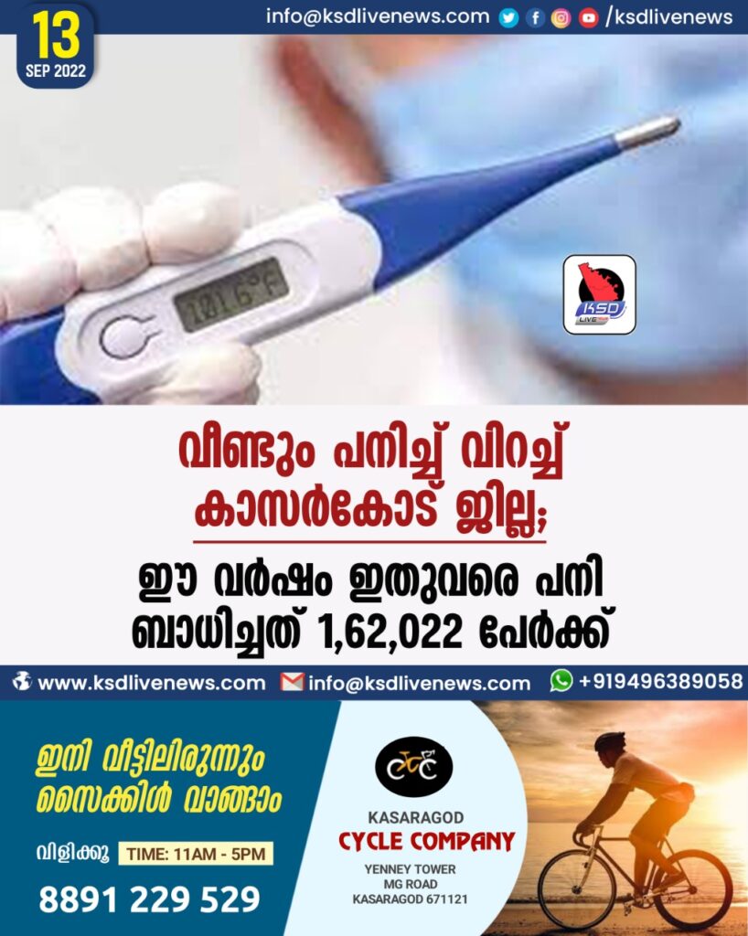 വീണ്ടും പനിച്ച് വിറച്ച് കാസർകോട് ജില്ല; ഈ വര്ഷം ഇതുവരെ പനി ബാധിച്ചത് 1,62,022 പേര്ക്ക്