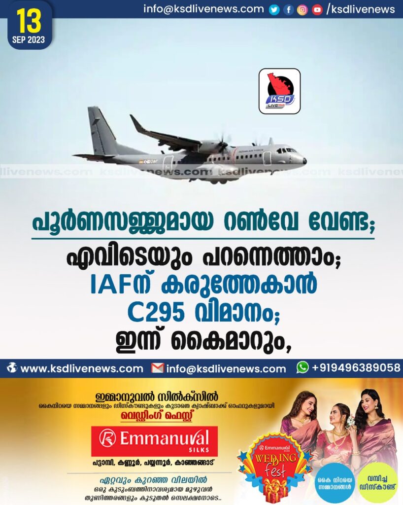 പൂര്‍ണസജ്ജമായ റണ്‍വേ വേണ്ട, എവിടെയും പറന്നെത്താം; IAF-ന്‌ കരുത്തേകാന്‍ C-295 വിമാനം, ഇന്ന് കൈമാറും