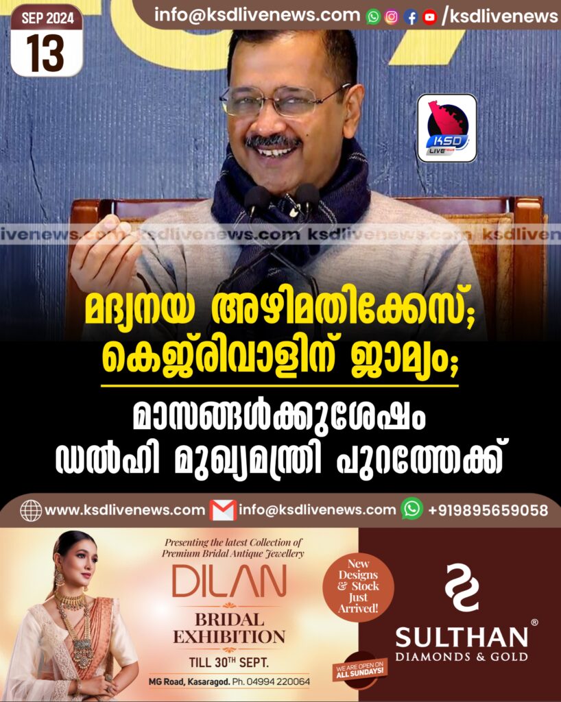 മദ്യനയ അഴിമതിക്കേസ്: കെജ്രിവാളിന് ജാമ്യം; മാസങ്ങള്ക്കുശേഷം ഡല്ഹി മുഖ്യമന്ത്രി പുറത്തേക്ക്