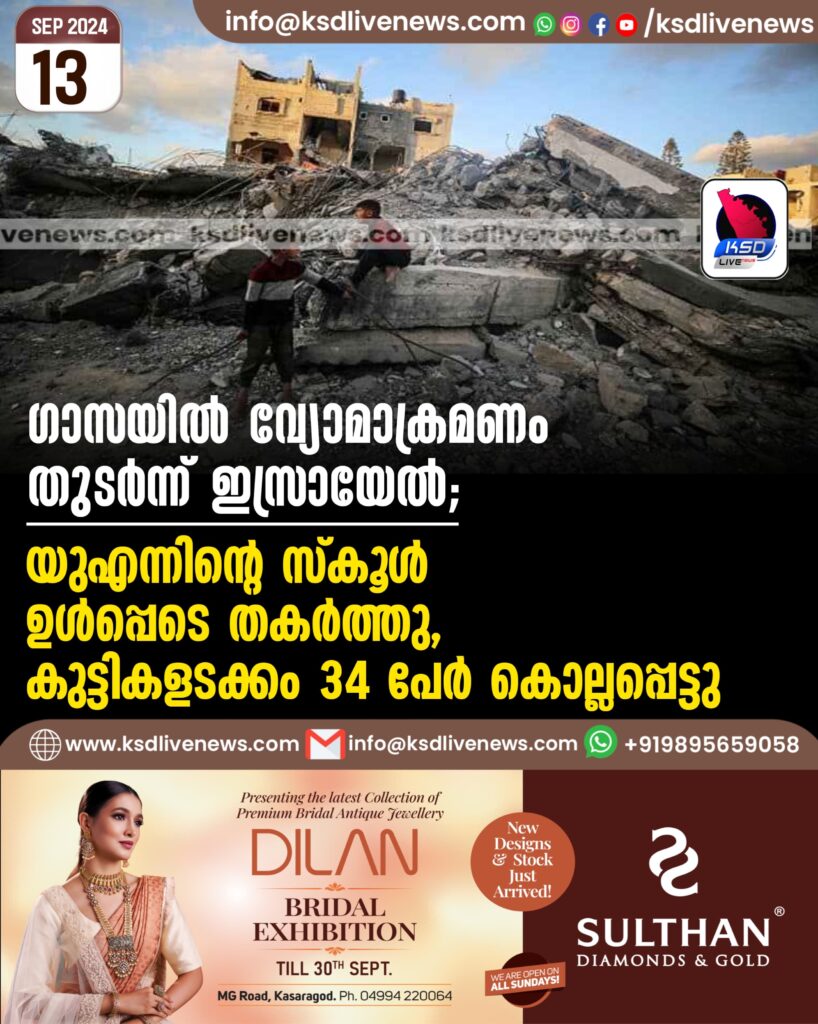 ഗാസയില്‍ വ്യോമാക്രമണം തുടര്‍ന്ന് ഇസ്രായേല്‍; യുഎന്നിന്റെ സ്കൂള്‍ ഉള്‍പ്പെടെ തകര്‍ത്തു, കുട്ടികളടക്കം 34 പേര്‍ കൊല്ലപ്പെട്ടു
