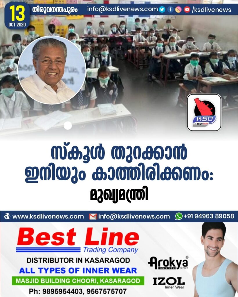 സ്കൂൾ തുറക്കാൻ ഇനിയും കാത്തിരിക്കണം : മുഖ്യമന്ത്രി