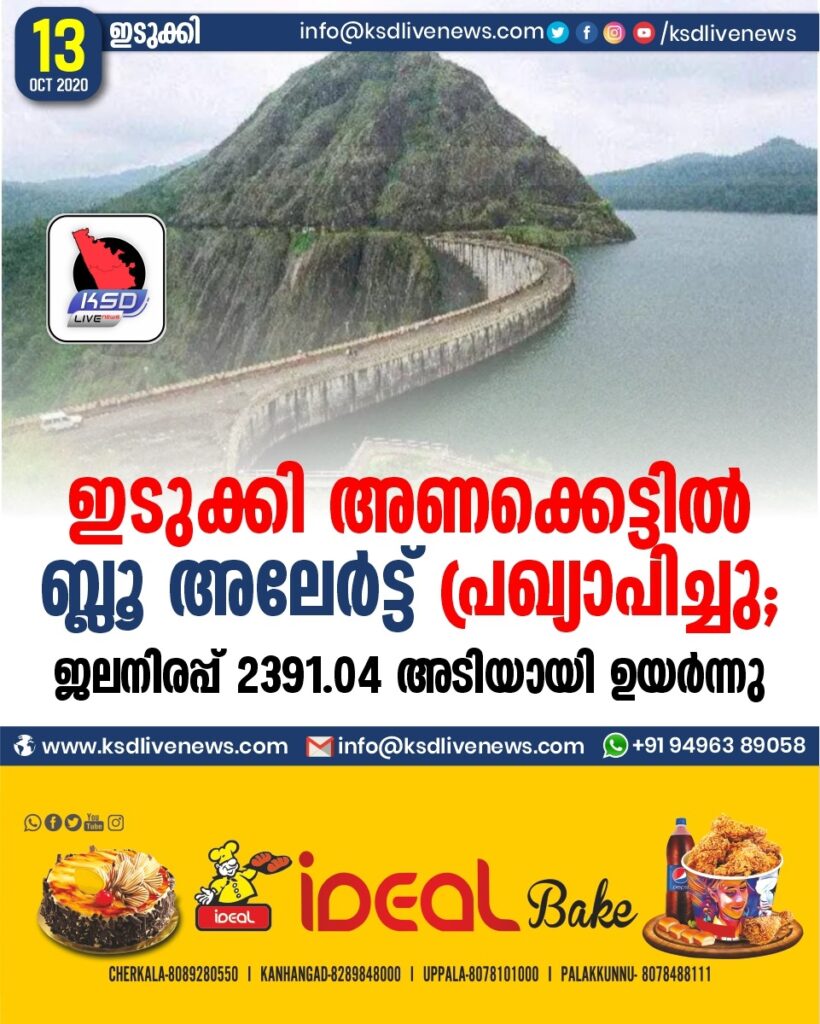 ഇടുക്കി അണക്കെട്ടിൽ ബ്ലൂ അലേർട്ട് പ്രഖ്യാപിച്ചു ; ജലനിരപ്പ് 2391.04 അടിയായി ഉയർന്നു