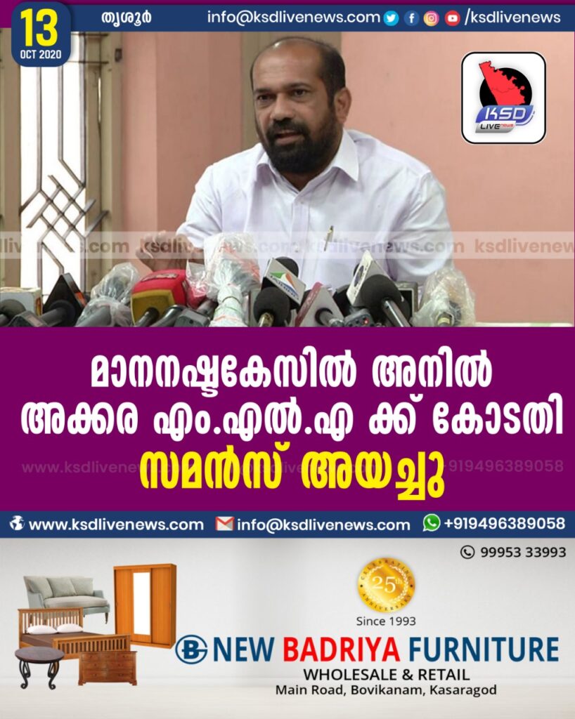 മാനനഷ്ടകേസിൽ അനിൽ അക്കര എം.എൽ.എ ക്ക് കോടതി സമൻസ് അയച്ചു