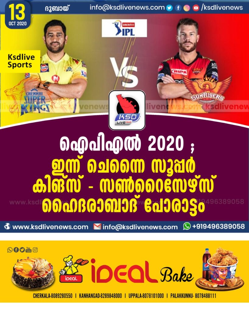 ഐപിഎൽ 2020 ; ഇന്ന് ചെന്നൈ സൂപ്പർ കിങ്സ് – സൺറൈസേഴ്സ് ഹൈദരാബാദ് പോരാട്ടം