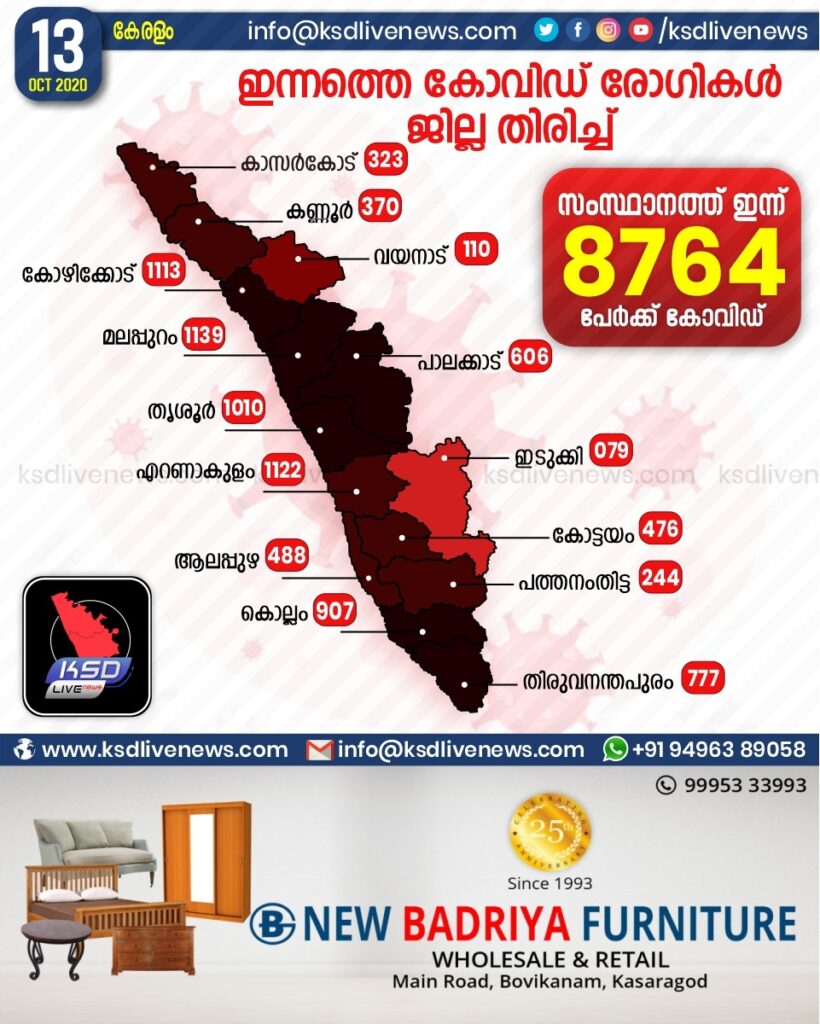 സംസ്ഥാനത്ത് ഇന്ന് കോവിഡ് പോസിറ്റീവായരുടെ ജില്ല തിരിച്ചുള്ള സ്ഥിതി വിവരങ്ങൾ