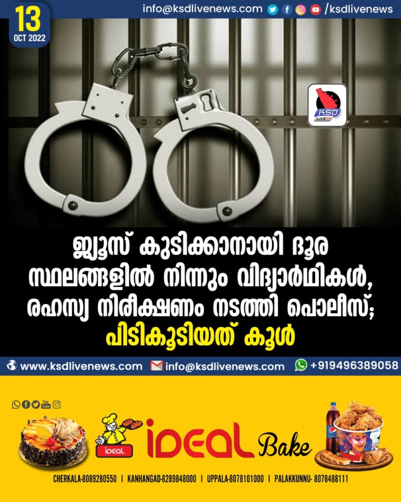 ജ്യൂസ് കുടിക്കാനായി ദൂര സ്ഥലങ്ങളിൽ നിന്നും വിദ്യാർഥികൾ, രഹസ്യ നിരീക്ഷണം നടത്തി പൊലീസ്; പിടികൂടിയത് ‘കൂള്‍’