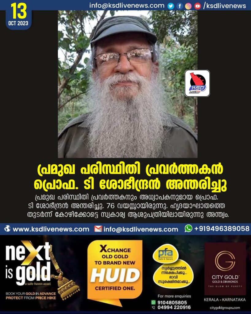 പ്രമുഖ പരിസ്ഥിതി പ്രവര്‍ത്തകൻ പ്രൊഫ. ടി ശോഭീന്ദ്രന്‍ അന്തരിച്ചു