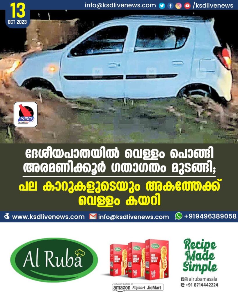 ദേശീയപാതയിൽ വെള്ളംപൊങ്ങി അരമണിക്കൂർ ഗതാഗതം മുടങ്ങി; പല കാറുകളുടെയും അകത്തേക്ക് വെള്ളം കയറി