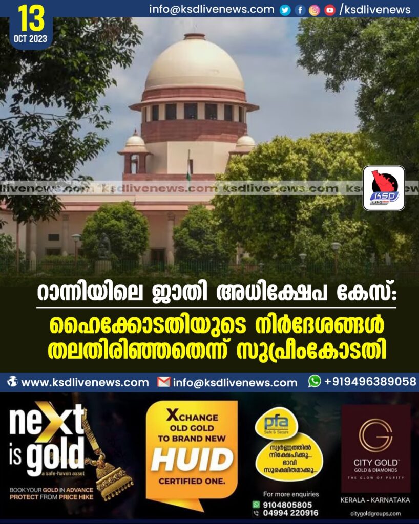 റാന്നിയിലെ ജാതി അധിക്ഷേപ കേസ്: ഹൈക്കോടതിയുടെ നിര്ദേശങ്ങള് തലതിരിഞ്ഞതെന്ന് സുപ്രീം കോടതി
