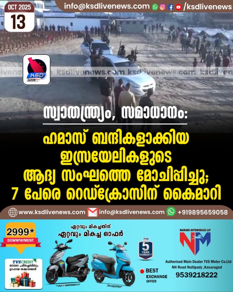 സ്വാതന്ത്ര്യം, സമാധാനം; ഹമാസ് ബന്ദികളാക്കിയ ഇസ്രയേലികളുടെ ആദ്യ സംഘത്തെ മോചിപ്പിച്ചു, 7 പേരെ റെഡ്ക്രോസിന് കൈമാറി