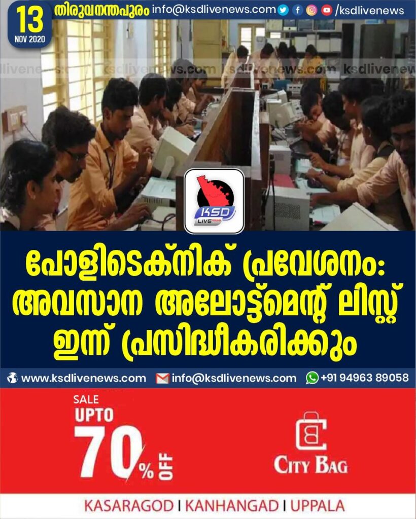 പോളിടെക്നിക് പ്രവേശനം : അവസാന അലോട്ട്മെന്റ് ലിസ്റ്റ് ഇന്ന് പ്രസിദ്ധീകരിക്കും