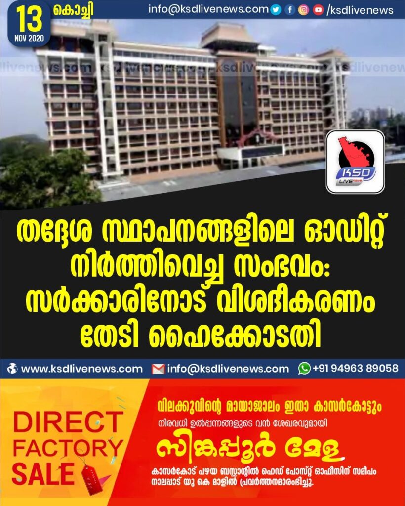 തദ്ദേശ സ്ഥാപനങ്ങളിലെ ഓഡിറ്റ് നിര്‍ത്തിവെച്ച സംഭവം: സര്‍ക്കാരിനോട് വിശദീകരണം തേടി ഹൈക്കോടതി