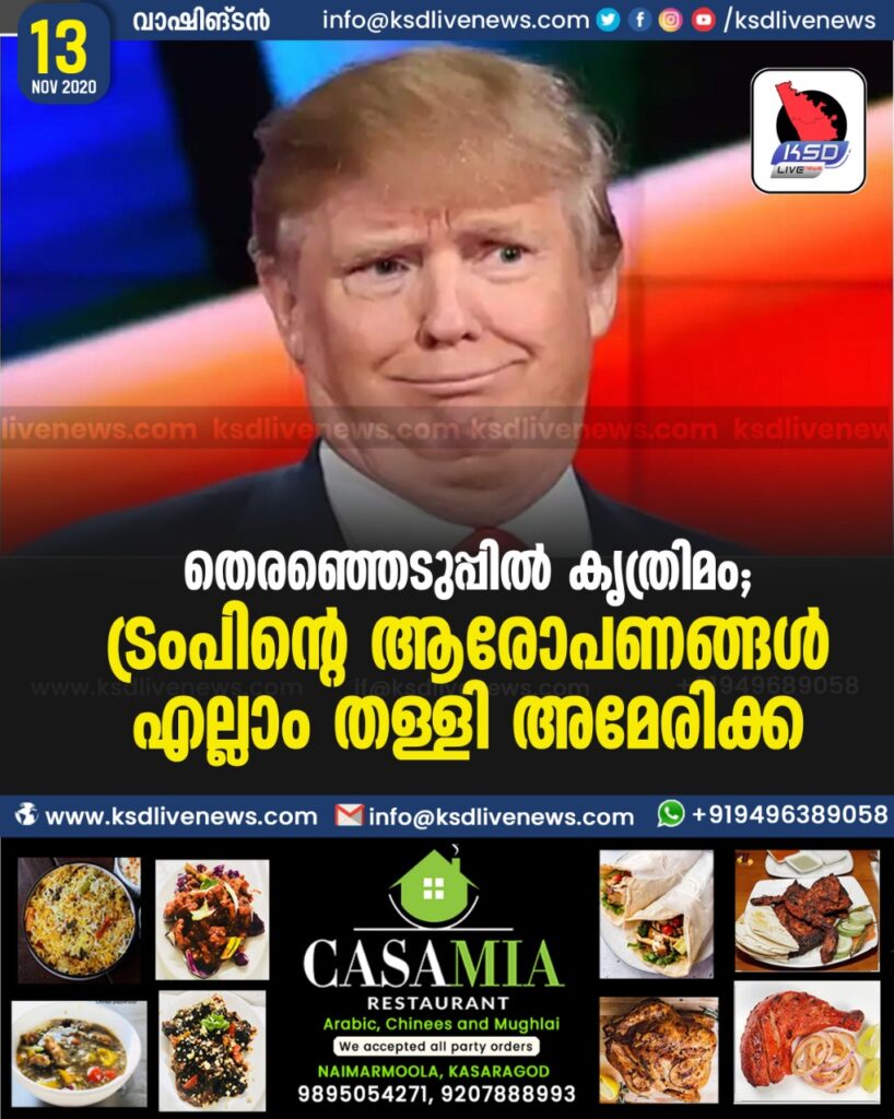 തെരഞ്ഞെടുപ്പിൽ കൃത്രിമം ; ട്രംപിന്റെ ആരോപണങ്ങൾ എല്ലാം തള്ളി അമേരിക്ക