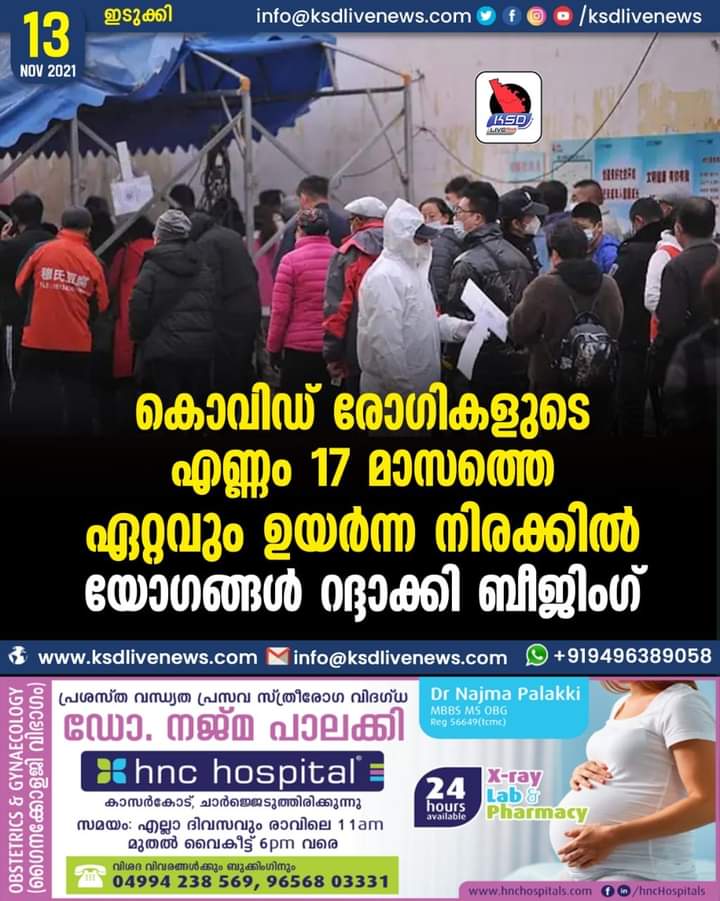 കൊവിഡ് രോഗികളുടെ എണ്ണം 17 മാസത്തെ ഏറ്റവും ഉയര്ന്ന നിരക്കില് യോഗങ്ങള് റദ്ദാക്കി ബീജിംഗ്