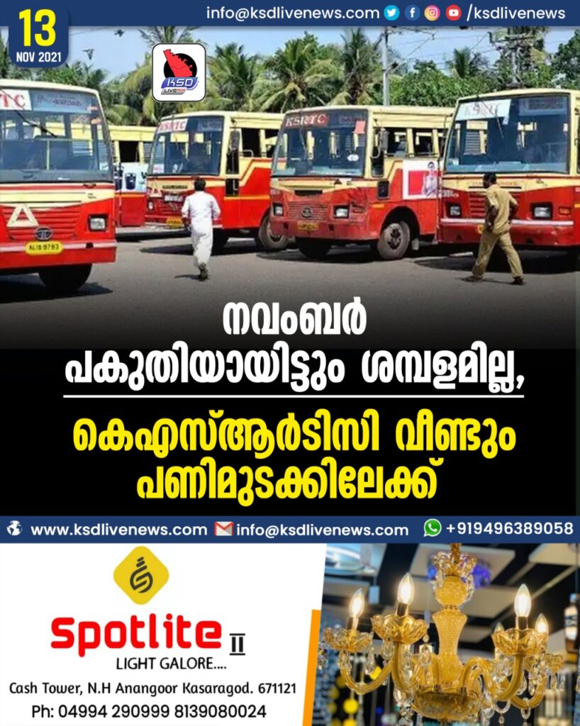 നവംബർ പകുതിയായിട്ടും ശമ്പളമില്ല, കെഎസ്ആർടിസി വീണ്ടും പണിമുടക്കിലേക്ക്
