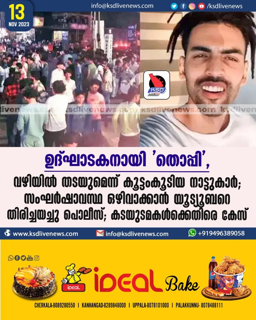 ഉദ്ഘാടകനായി ‘തൊപ്പി’, വഴിയില് തടയുമെന്ന് കൂട്ടംകൂടിയ നാട്ടുകാര്; സംഘര്ഷാവസ്ഥ ഒഴിവാക്കാൻ യൂട്യൂബറെ തിരിച്ചയച്ചു പൊലീസ്; കടയുടമകള്ക്കെതിരെ കേസ്