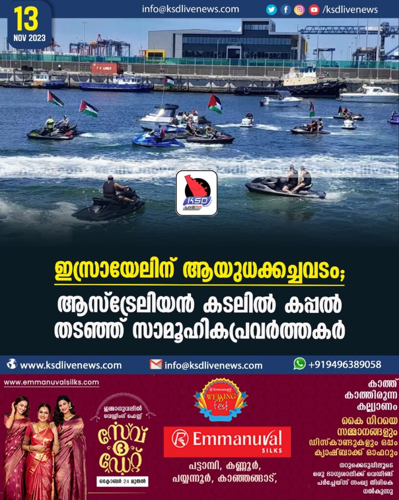 ഇസ്രായേലിന് ആയുധക്കച്ചവടം; ആസ്ട്രേലിയൻ കടലില് കപ്പല് തടഞ്ഞ് സാമൂഹികപ്രവര്ത്തകര്