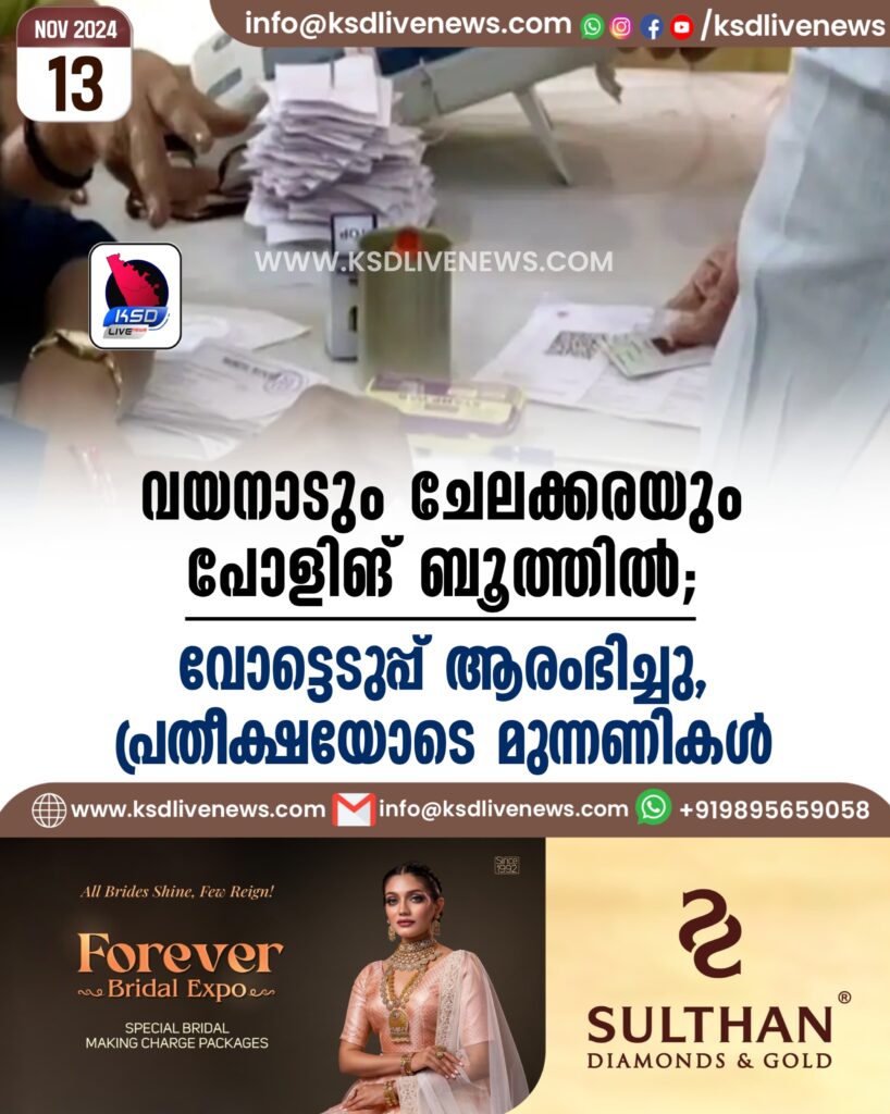 വയനാടും ചേലക്കരയും പോളിങ് ബൂത്തിൽ; വോട്ടെടുപ്പ് ആരംഭിച്ചു, പ്രതീക്ഷയോടെ മുന്നണികൾ