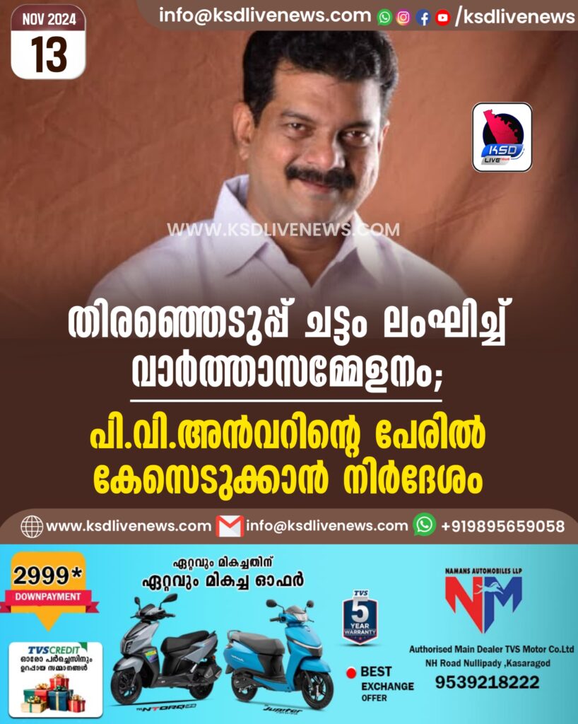 തിരഞ്ഞെടുപ്പ് ചട്ടം ലംഘിച്ച് വാർത്താസമ്മേളനം; പി.വി.അൻവറിന്റെ പേരിൽ കേസെടുക്കാൻ നിർദേശം