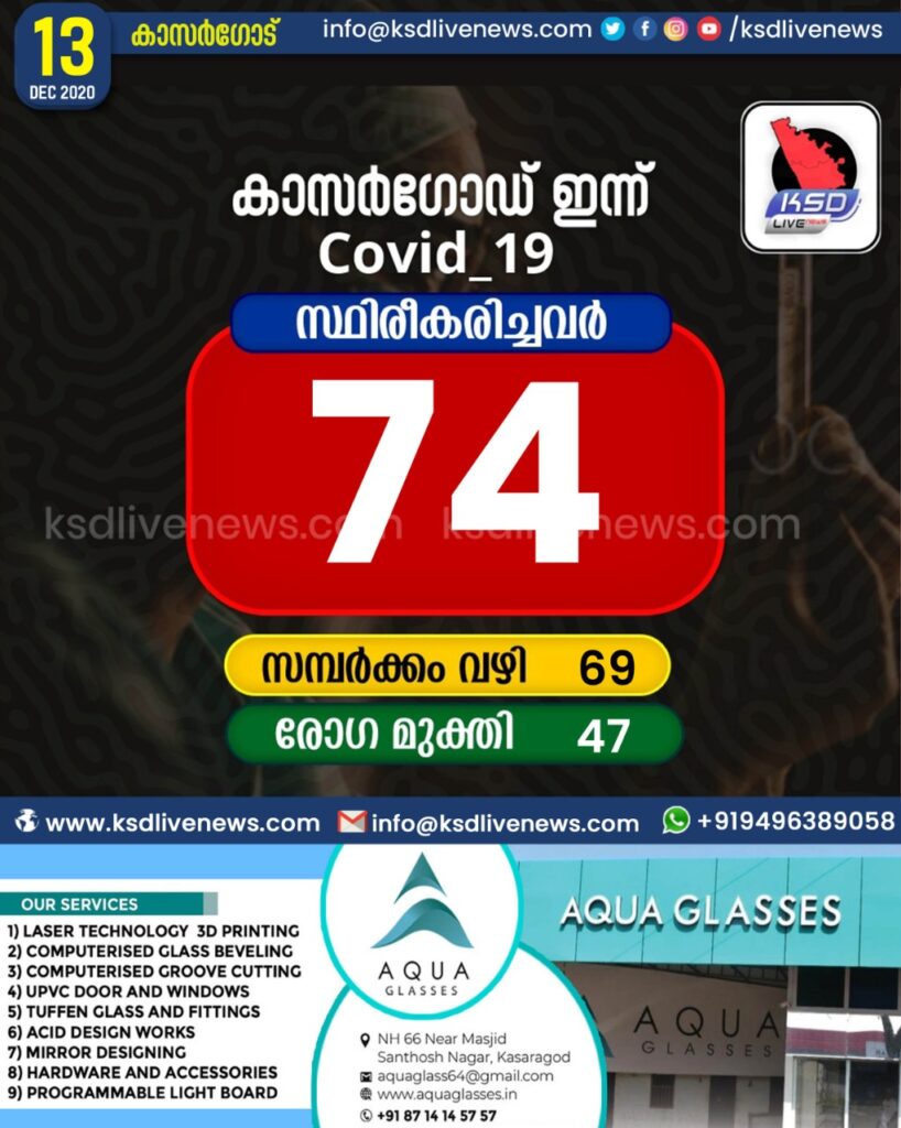കാസര്കോട് ജില്ലയില് 74 പേര്ക്ക് കോവിഡ്,