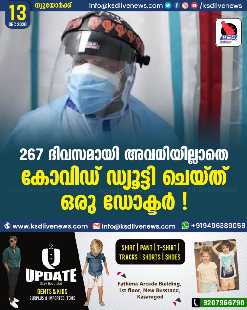 267 ദിവസമായി അവധിയില്ലാതെ കോവിഡ് ഡ്യൂട്ടി ചെയ്ത് ഒരു ഡോക്ടർ !