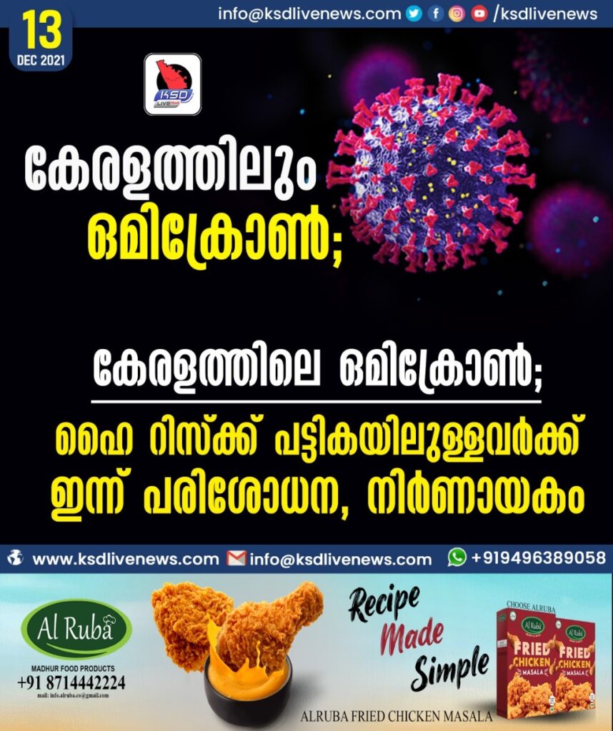 കേരളത്തിലെ ഒമിക്രോൺ; ഹൈ റിസ്ക്ക് പട്ടികയിലുള്ളവർക്ക് ഇന്ന് പരിശോധന, നിർണായകം