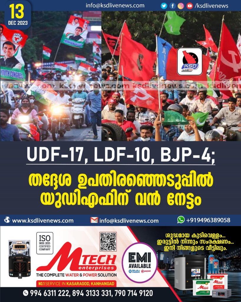 UDF-17, LDF-10, BJP-4; തദ്ദേശ ഉപതിരഞ്ഞെടുപ്പില് യുഡിഎഫിന് വന് നേട്ടം, local body-by election results kerala