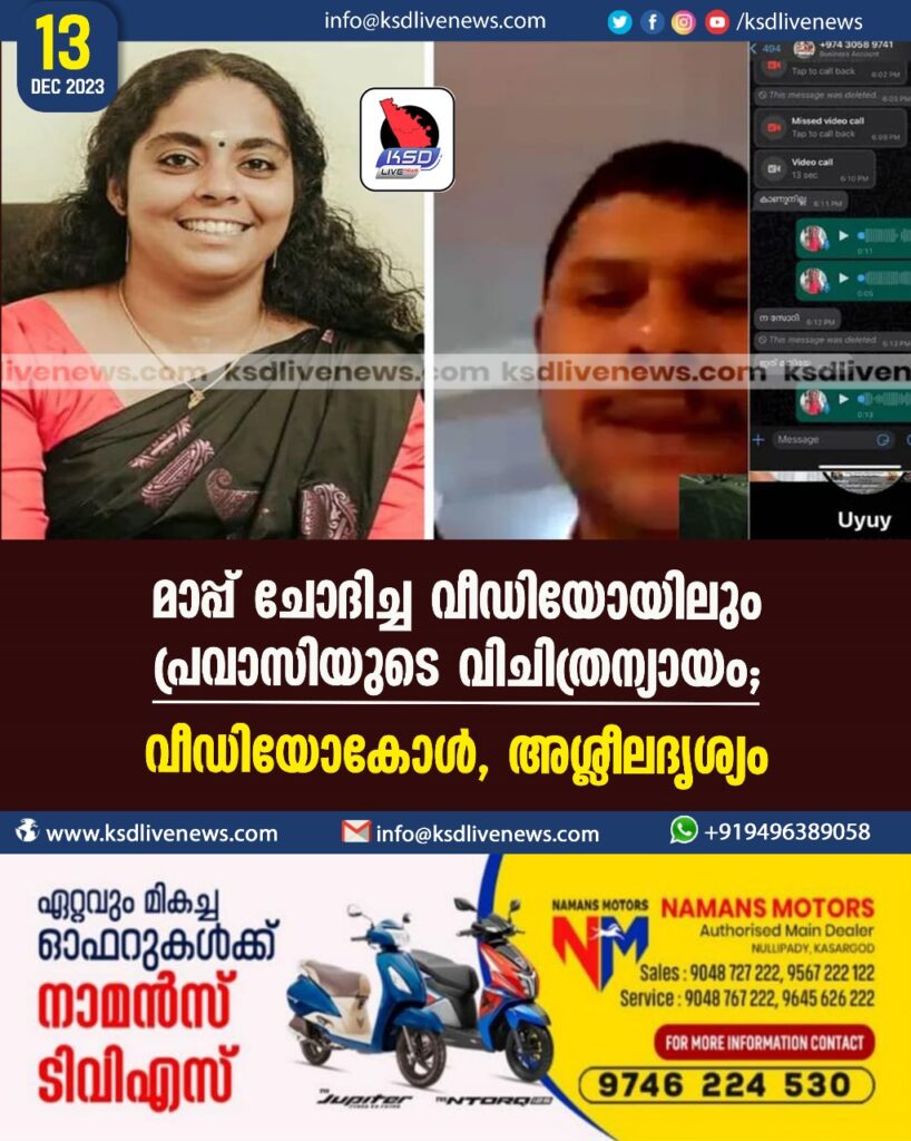 മാപ്പ് ചോദിച്ച വീഡിയോയിലും പ്രവാസിയുടെ വിചിത്രന്യായം; വീഡിയോകോൾ, അശ്ലീലദൃശ്യം, പരാതി