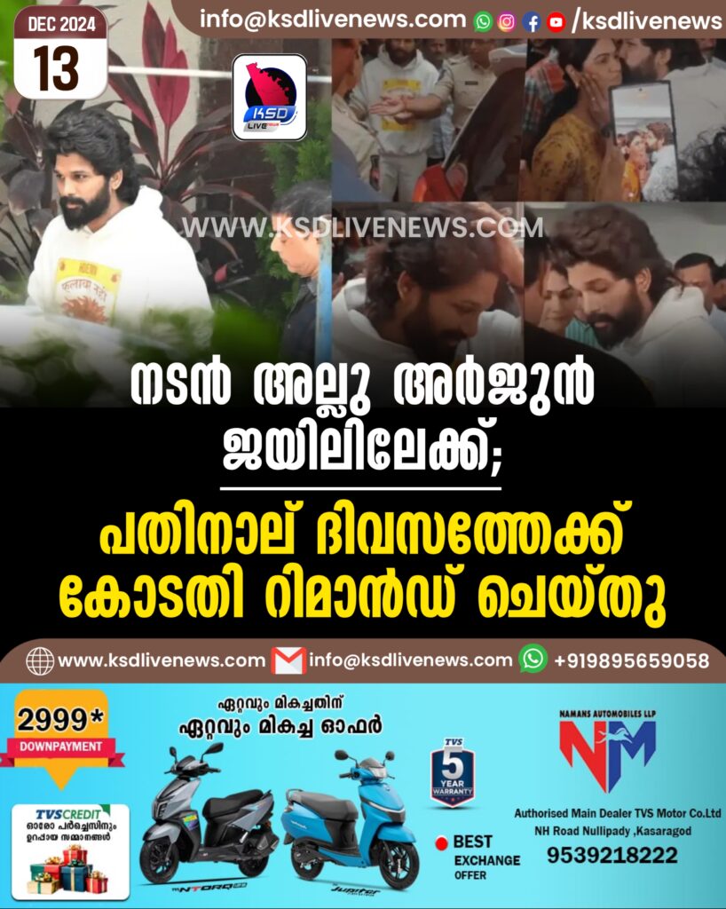 നടന് അല്ലു അര്ജുന് ജയിലിലേക്ക്; പതിനാല് ദിവസത്തേക്ക് കോടതി റിമാന്ഡ് ചെയ്തു