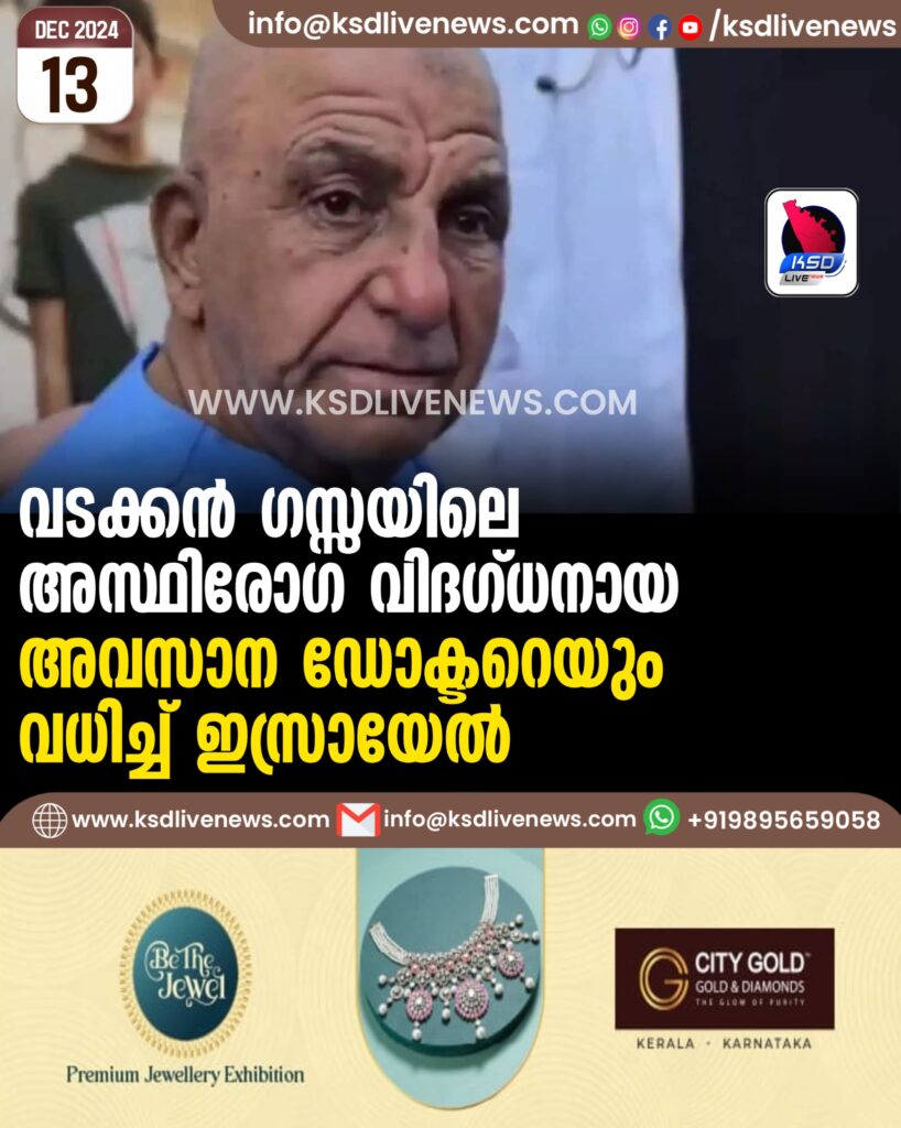 വടക്കൻ ഗസ്സയിലെ അസ്ഥിരോഗ വിദഗ്ധനായ അവസാന ഡോക്ടറെയും വധിച്ച് ഇസ്രായേൽ