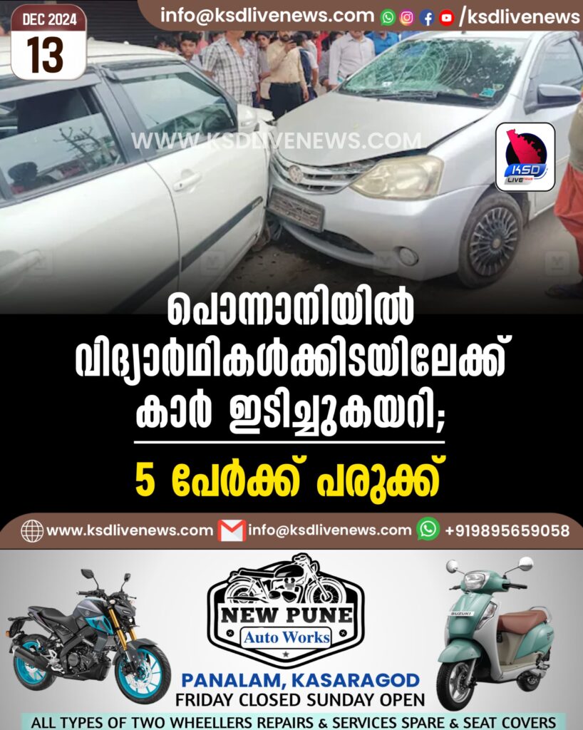 പൊന്നാനിയിൽ വിദ്യാർഥികൾക്കിടയിലേക്ക് കാർ ഇടിച്ചുകയറി; 5 പേർക്ക് പരുക്ക്