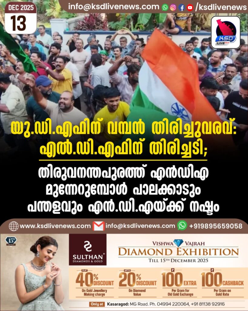 യു.ഡി.എഫിന് വമ്പൻ തിരിച്ചുവരവ്: എൽ.ഡി.എഫിന് തിരിച്ചടി; തിരുവനന്തപുരത്ത് എൻഡിഎ മുന്നേറുമ്പോൾ