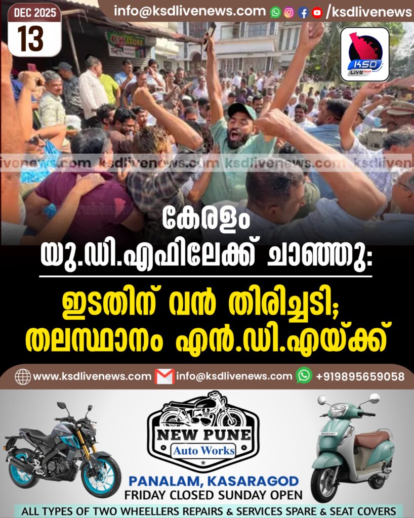 കേരളം യു.ഡി.എഫിലേക്ക് ചാഞ്ഞു: ഇടതിന് വൻതിരിച്ചടി; തലസ്ഥാനം എൻ.ഡി.എയ്ക്ക്