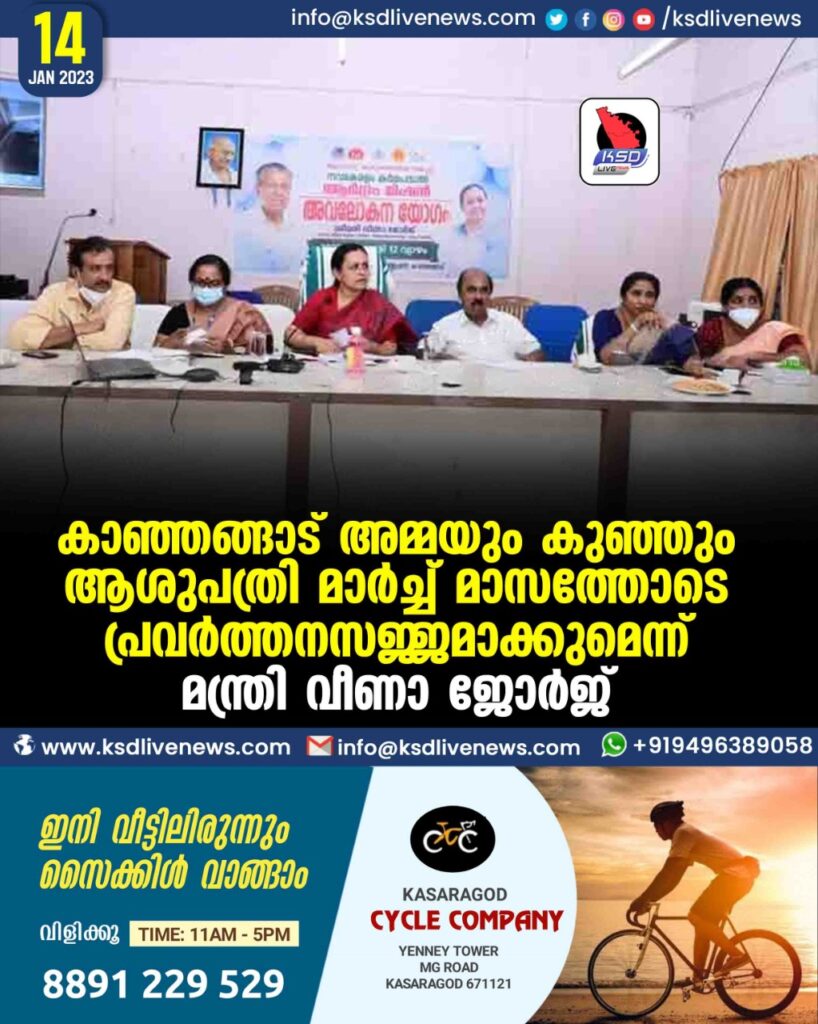 കാഞ്ഞങ്ങാട് അമ്മയും കുഞ്ഞും ആശുപത്രി മാര്ച്ച് മാസത്തോടെ പ്രവര്ത്തനസജ്ജമാക്കുമെന്ന് മന്ത്രി വീണാ ജോര്ജ്