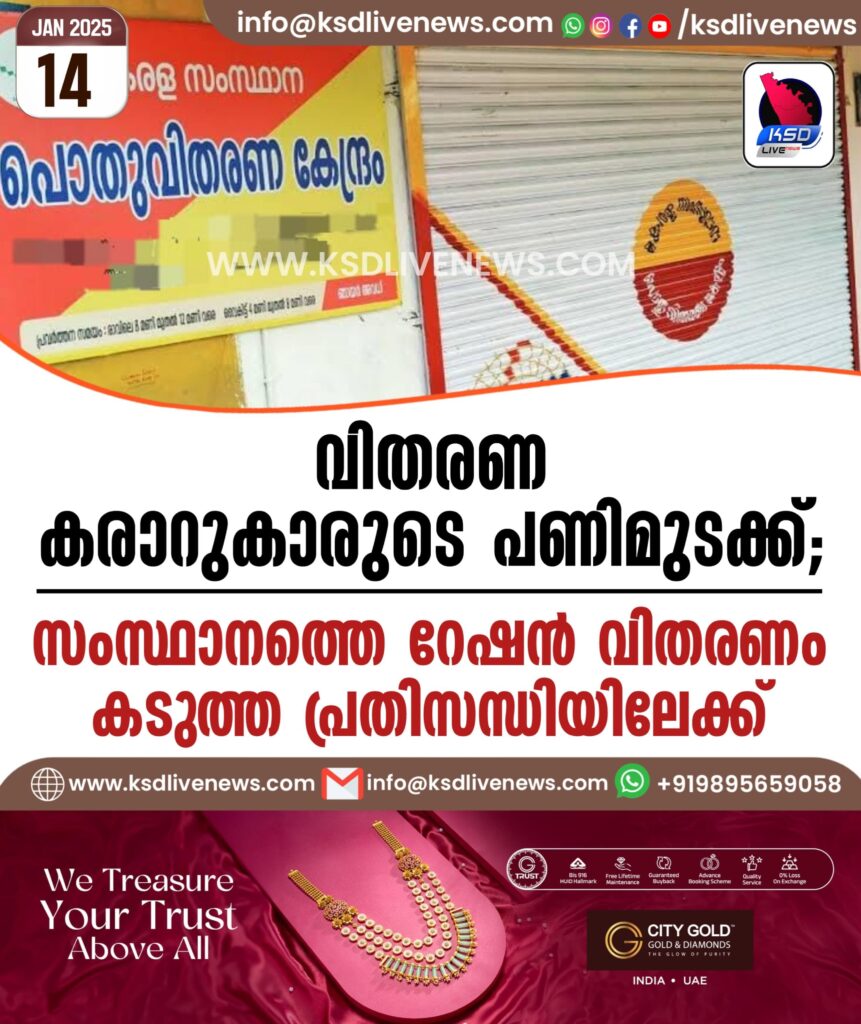 വിതരണ കരാറുകാരുടെ പണിമുടക്ക്; സംസ്ഥാനത്തെ റേഷൻ വിതരണം കടുത്ത പ്രതിസന്ധിയിലേക്ക്