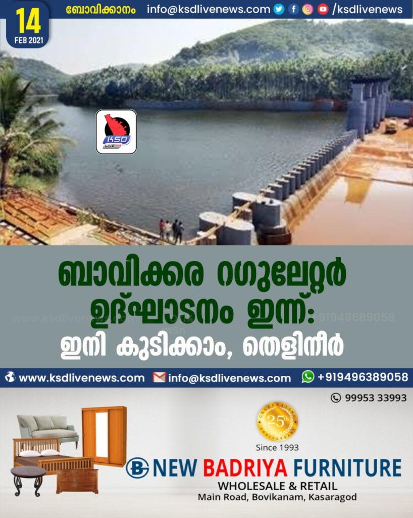 ബാവിക്കര റഗുലേറ്റർ ഉദ്ഘാടനം ഇന്ന്: ഇനി കുടിക്കാം, തെളിനീർ