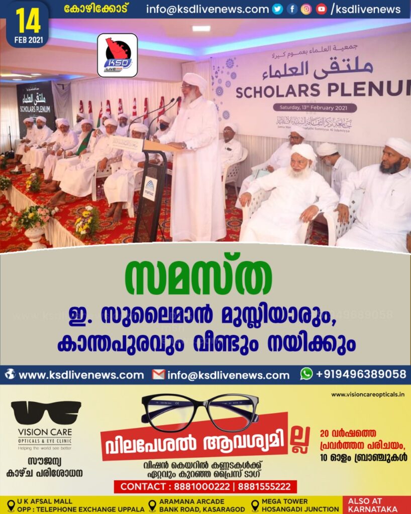 സമസ്ത : ഇ. സുലൈമാൻ മുസ്ലിയാരും, കാന്തപുരവും വീണ്ടും നയിക്കും