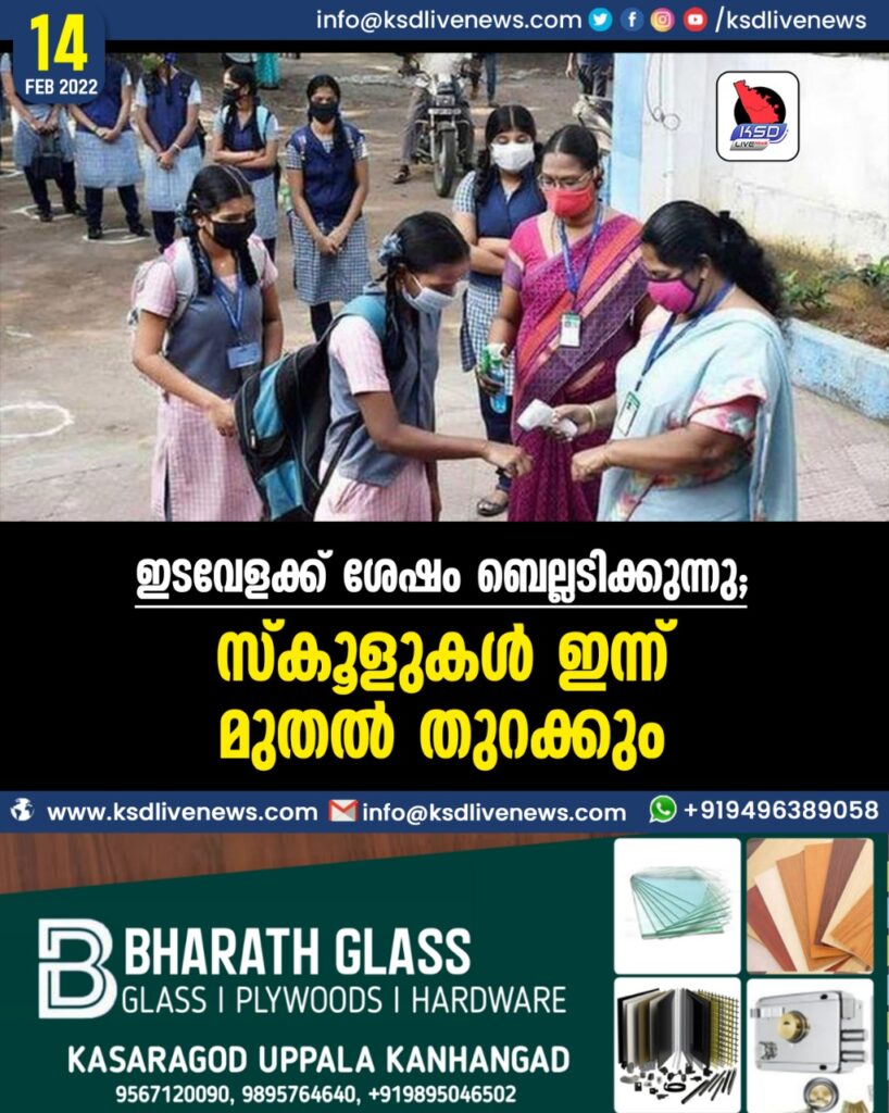 ഇടവേളക്ക് ശേഷം ബെല്ലടിക്കുന്നു; സ്കൂളുകള് ഇന്ന് മുതല് തുറക്കും