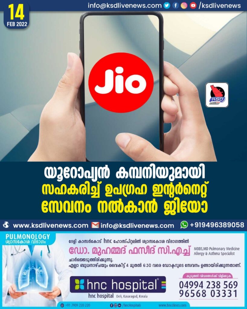 യൂറോപ്യന്‍ കമ്പനിയുമായി സഹകരിച്ച് ഉപഗ്രഹ ഇന്റര്‍നെറ്റ് സേവനം നല്‍കാന്‍ ജിയോ