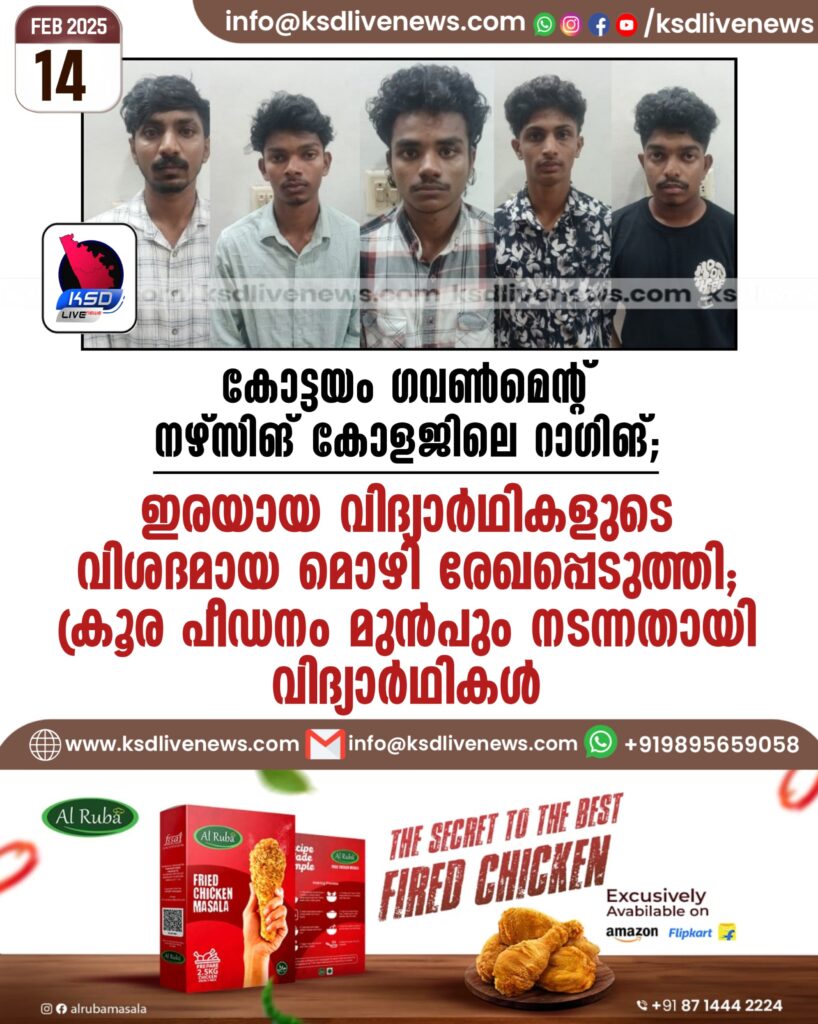 കോട്ടയം ഗവണ്‍മെന്റ് നഴ്‌സിങ് കോളജിലെ റാഗിങ്; ഇരയായ വിദ്യാര്‍ഥികളുടെ വിശദമായ മൊഴി രേഖപ്പെടുത്തി; ക്രൂര പീഡനം മുന്‍പും നടന്നതായി വിദ്യാര്‍ഥികള്‍