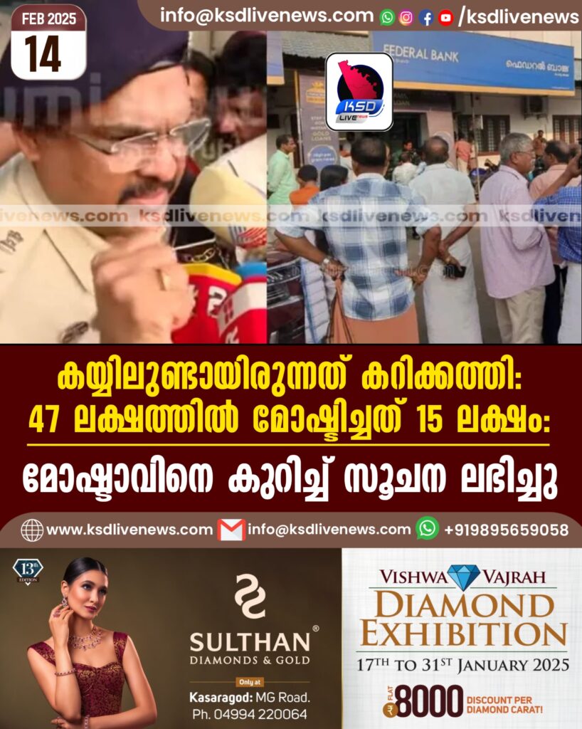 കയ്യിലുണ്ടായിരുന്നത് കറിക്കത്തി, 47 ലക്ഷത്തിൽ മോഷ്ടിച്ചത് 15ലക്ഷം, മോഷ്ടാവിനെ കുറിച്ച് സൂചന ലഭിച്ചു